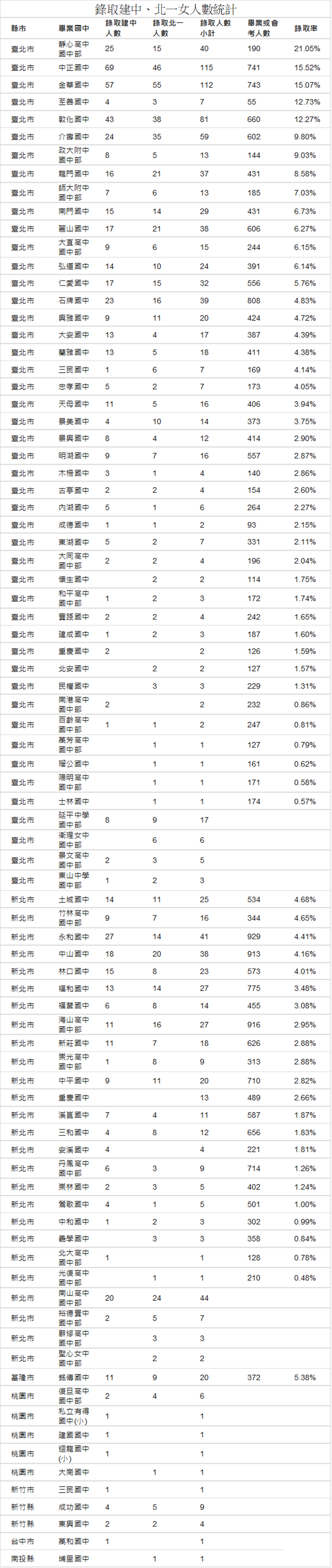 113年台灣公私立高中錄取台灣頂大人數統計,後續將持續更新